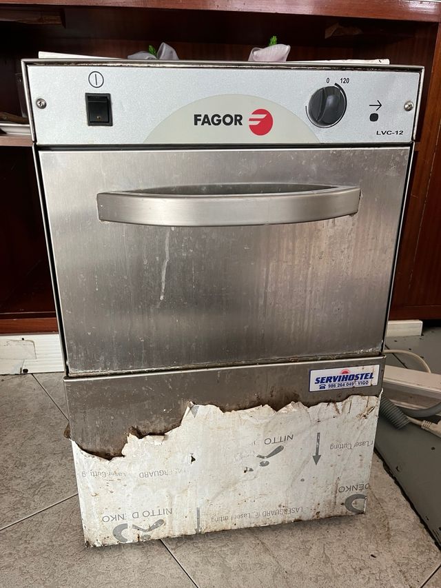 Lavavajillas de barra marca Fagor. - Modelo LVC-12 - Panel frontal de acero inoxidable. - Tirador metálico. - Indicador de programa y selector giratorio. - Cesta interior
