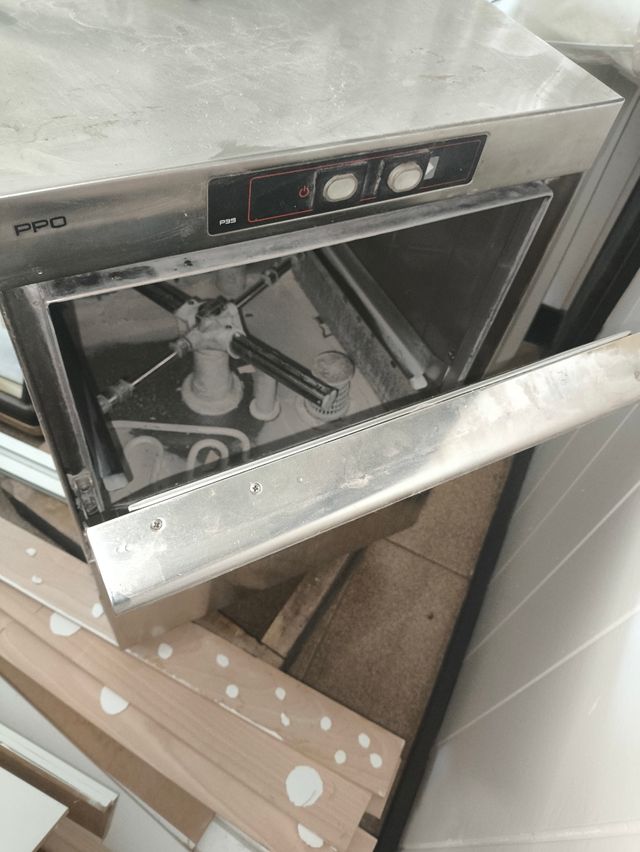Lavavajillas industrial PPO usado. Está algo sucio por el polvo, pero en general se ve en buen estado. - Marca: PPO - Modelo: P93 - Acero inoxidable