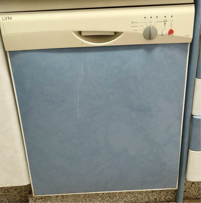 Detalles del productoLavavajillas LYN con panel frontal en color azul y detalles en blanco.
