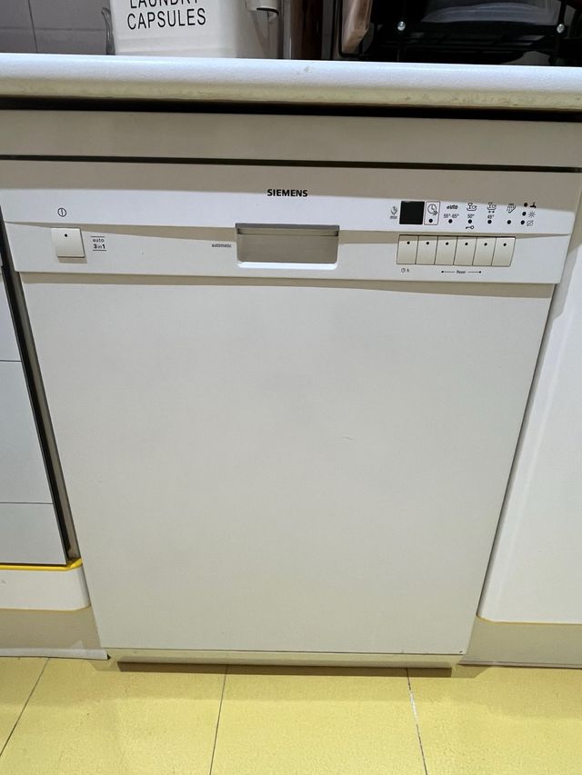 Detalles del productoLavavajillas de la marca Siemens en color blanco.