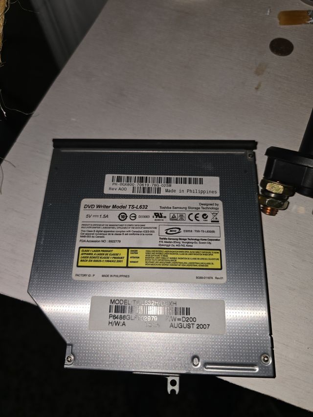 Lector DVD para portátil. - Modelo: TS-L632H/DEXH - Fabricado en Filipinas - Fecha de fabricación: Agosto 2007