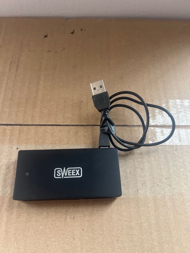 Lector de tarjetas multiformato con conexión USB. - Diseño compacto y elegante en color negro. - Compatible con diversas tarjetas de memoria.