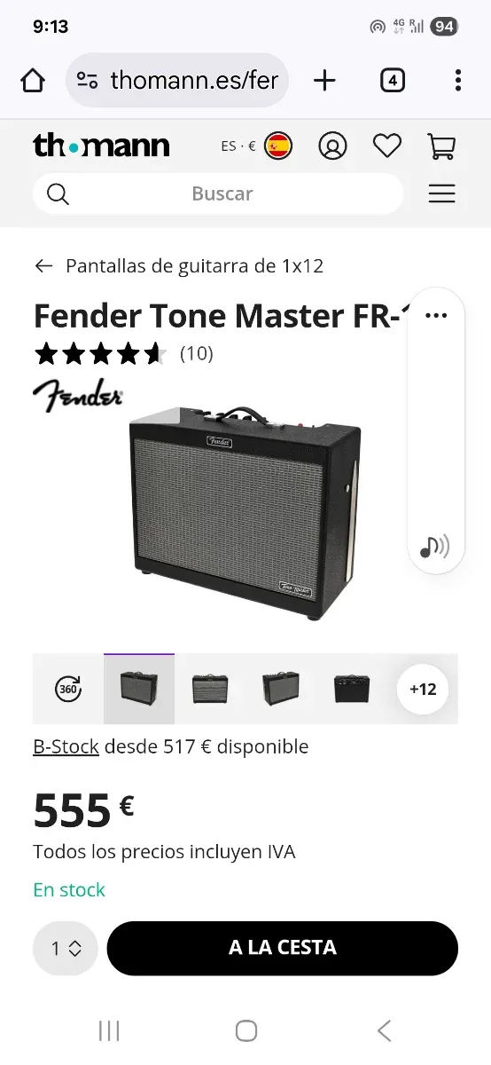 Detalles del productoAmplificador de guitarra Fender Tone Master FR12. Lo compré en egitana el día 7 de octubre, pero no me convence, así que he decidido devolverlo. No puedo hacer la devolución hasta el lunes o el martes, así que si estabas pensando en comprarlo, te lo puedes llevar en mano, con toda la garantía y ahorrarte unos euros.