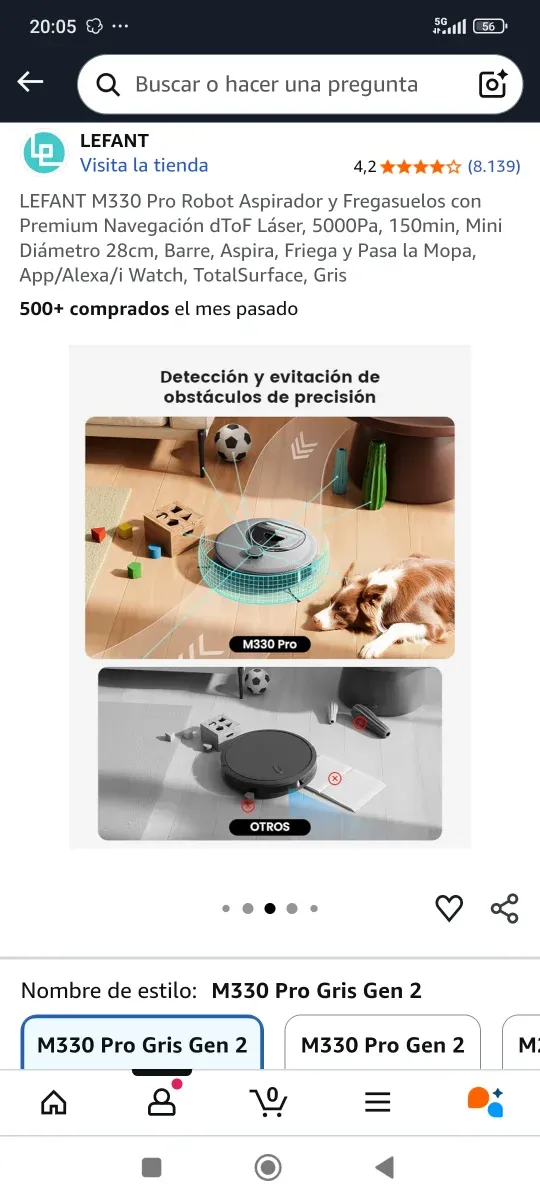 Detalles del productoRobot aspirador y fregasuelos LEFANT M330 Pro en color gris. Diseñado para una limpieza eficiente del hogar.