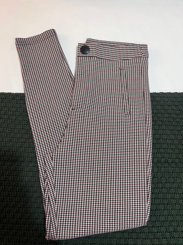 Leggings de tiro alto con un diseño de cuadros clásico en negro y rojo. Son cómodos y versátiles.