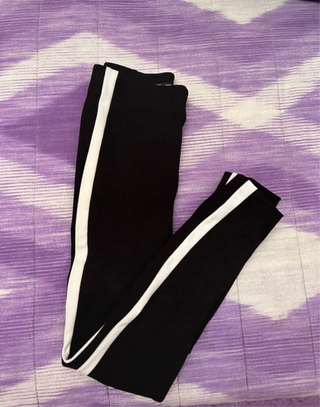Leggings Zara negros con raya blanca