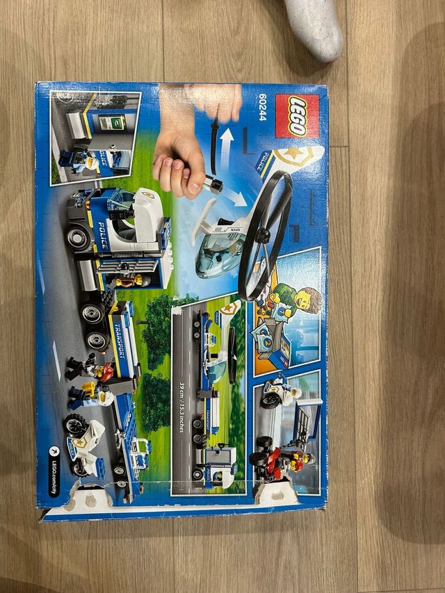 Detalles del productoSet de construcción LEGO City 60244, Camión de Policía con helicóptero y moto.