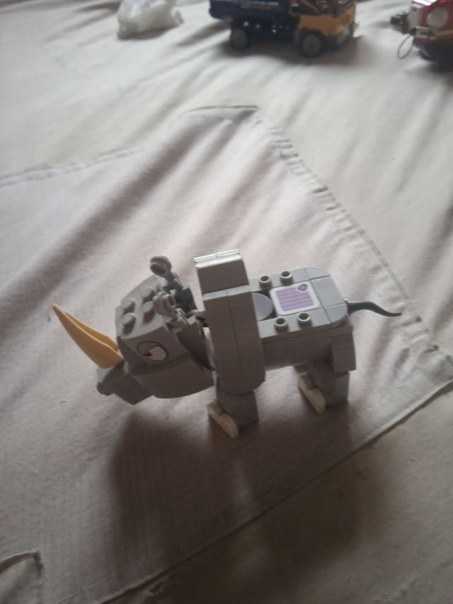 Rinoceronte de Lego, en buen estado. - Fabricado con piezas de Lego. - Color gris y amarillo. - Diseño compacto.