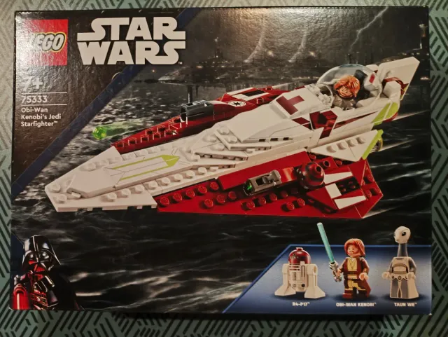 Detalles del productoSet de construcción Lego Star Wars 75333, el caza estelar de Obi-Wan Kenobi. Incluye figuras de R4-P17, Obi-Wan Kenobi y Taun We.