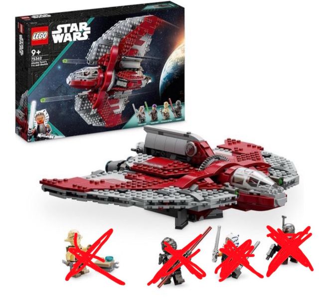 Set de construcción Lego Star Wars 75362, el Transbordador Jedi T-6 de Ahsoka Tano. Incluye la nave sin las figuras ni sus complementos.