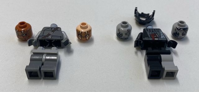 Piezas de LEGO Star Wars con un detalle de misprint. - Incluye torso y piernas. - Varias cabezas. - Accesorio de cabeza.