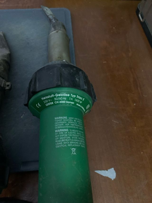Pistola de aire caliente Leister Typ Triac S. - Voltaje: 230V - Frecuencia: 50/60 Hz - Corriente: 7A - Potencia: 1600W - Fabricado en Suiza