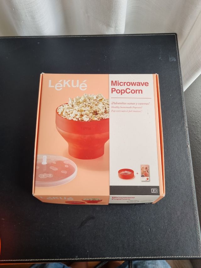 Detalles del productoPalomitero Lekue para microondas, prácticamente nuevo. Ideal para hacer palomitas de maíz de forma sana y rápida.