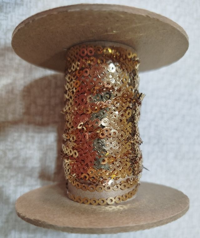 Rollo de 6 metros de lentejuelas doradas, perfectas para bordar manteletas de fallera.