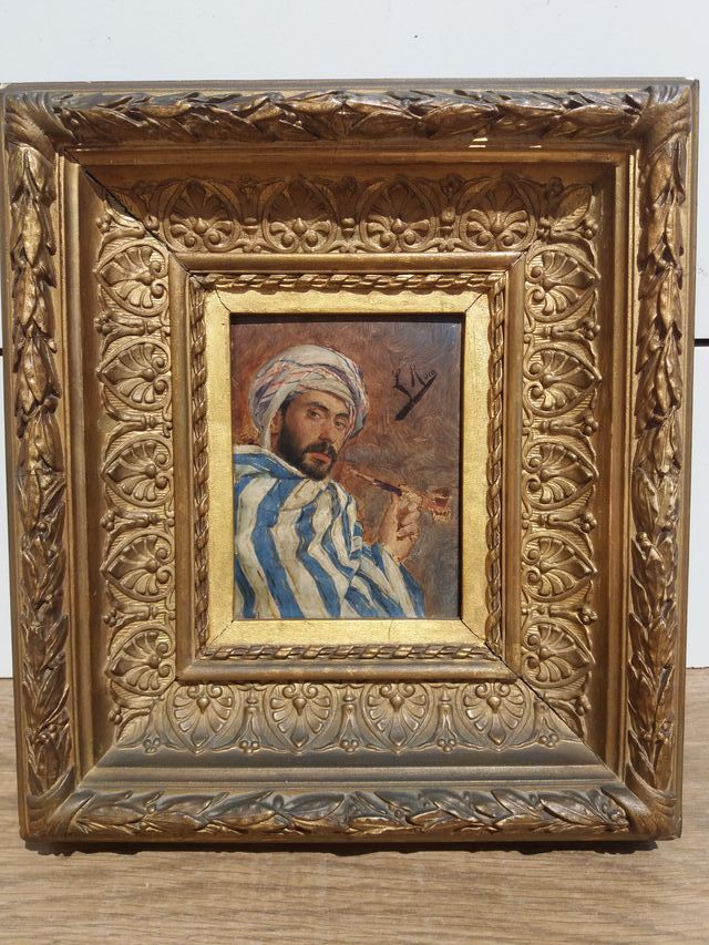 Detalles del productoLEOPOLDO ROCA I FURNÓ (BARCELONA, 1845-1934) : RETRATO DE ÁRABE FUMANDO LA PIPA DE HASHISH, HACIA 1880, ORIENTALISMO -