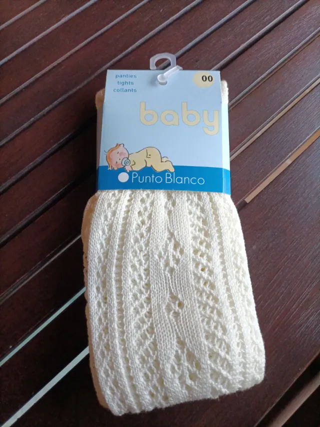 Leotardos de bebé de la marca Punto Blanco en color blanco. - Talla 00. - Diseño de punto calado. - Suaves y cómodos.