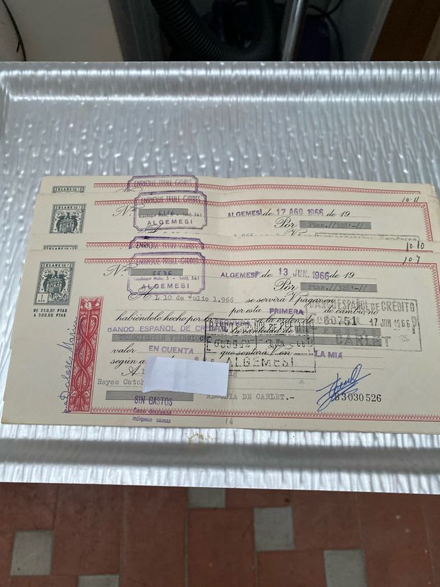 Detalles del producto11 letras de cambio de 1966. Documentos históricos con detalles de transacciones bancarias.