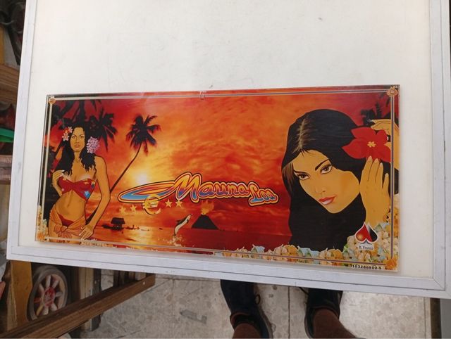 Detalles del productoLetrero decorativo con diseño tropical Mauna Loa para máquinas tragaperras.