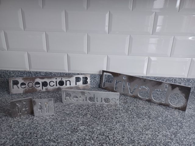 Detalles del productoSe venden cuatro letreros metálicos para señalización. Son resistentes y tienen un estilo industrial.