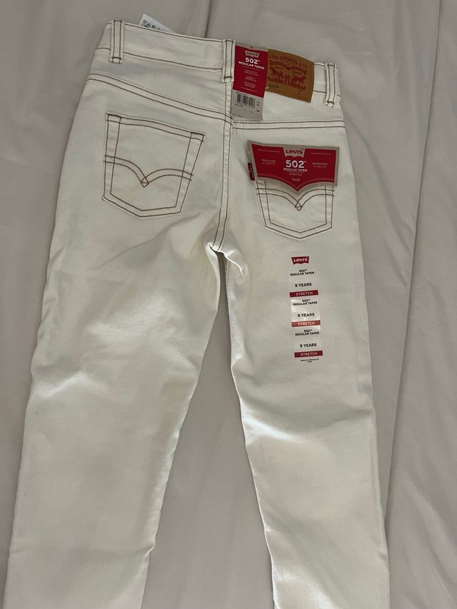 Pantalones vaqueros Levi's beige. - Modelo 502. - Corte Regular Taper. - Tejido con elasticidad (Stretch). - Talla 5 años.