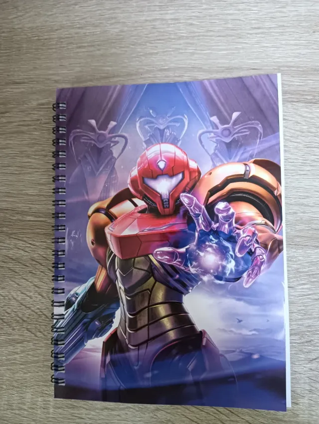 Detalles del productoLibreta o cuaderno de notas con diseño de Metroid Prime 4: Beyond.