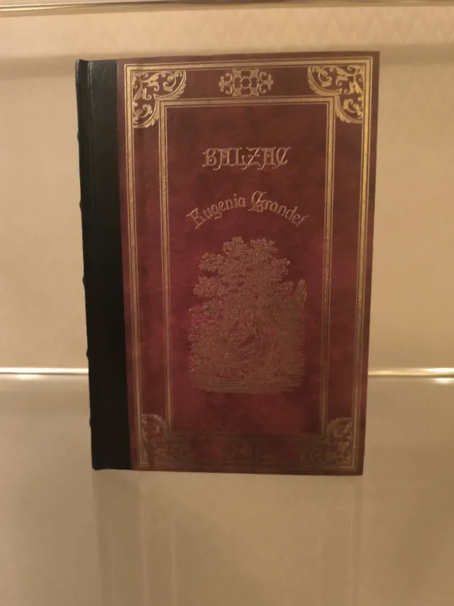 Libro de tapa dura con detalles dorados. - Portada con diseño ornamental. - Título: Balzac Eugenia Grandet.