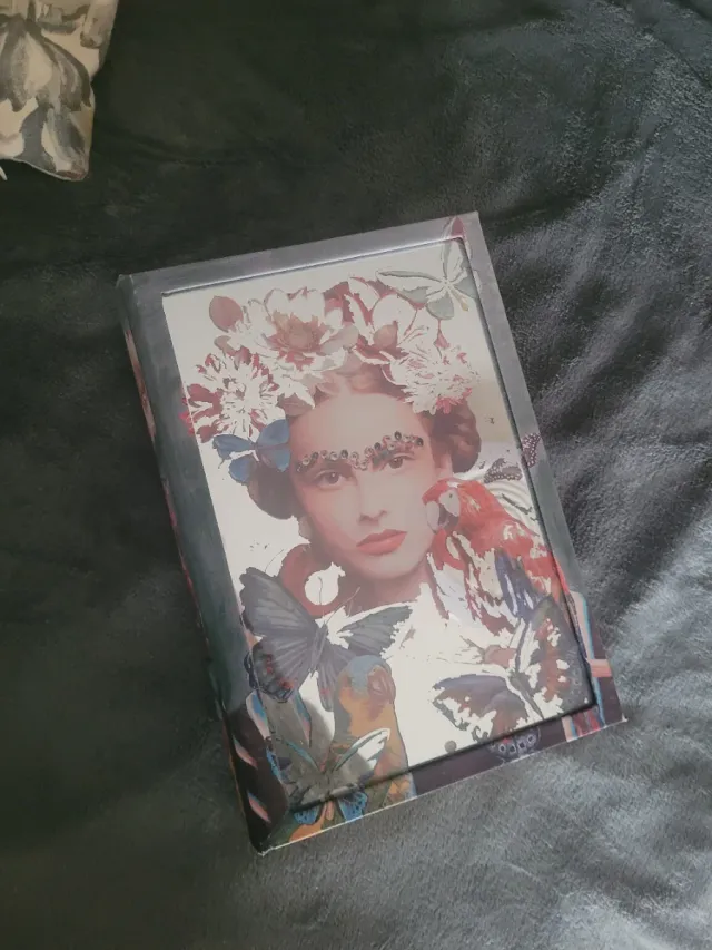 Detalles del productoEste libro o caja presenta un diseño inspirado en Frida Kahlo, con un estampado vibrante y detallado.