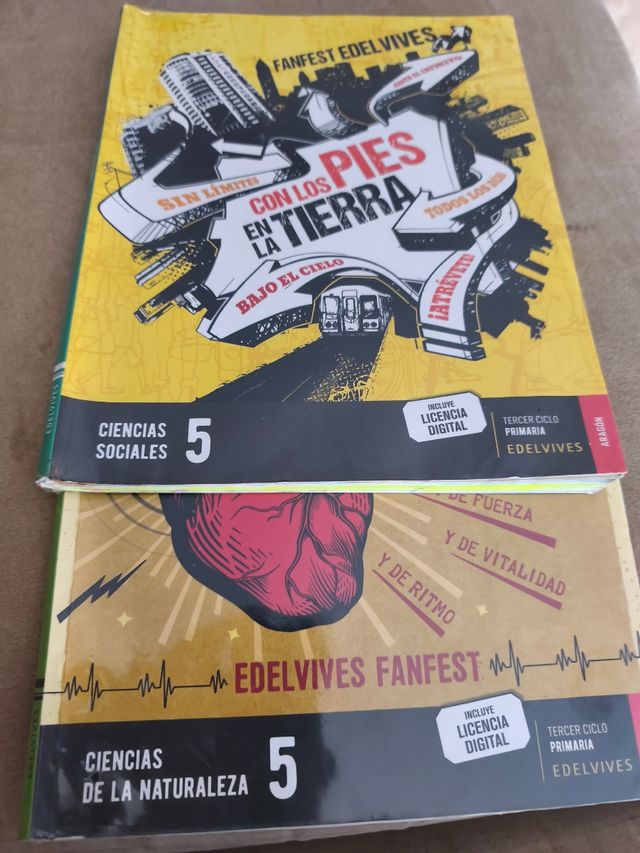 Libro ciencias sociales y ciencias naturales de 5 ° primaria fanfest edelvives con subrayados.7 euros cada uno o 13 los dos juntos.