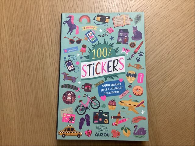 Libro de pegatinas 100% Stickers de Auzou. Incluye 4000 pegatinas para personalizar. - Cubierta con diseño colorido. - Ideal para manualidades y proyectos creativos.
