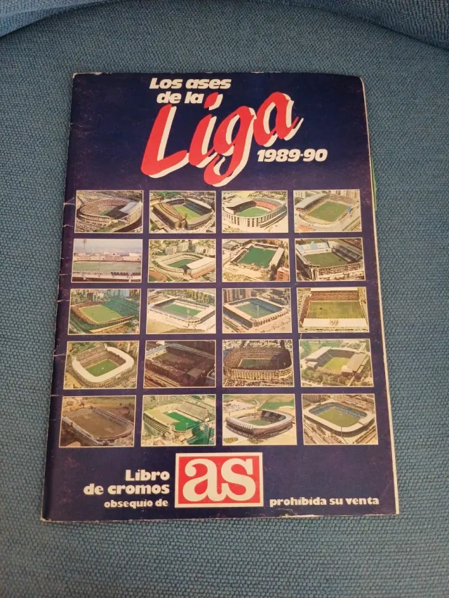 Libro de cromos de la Liga de fútbol de la temporada 1989-90, publicado por AS. - Incluye imágenes de estadios. - Casi completo