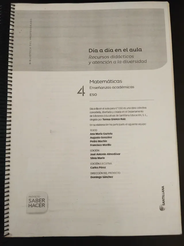 Libro de aula/profesor Matemáticas académicas 4ESO