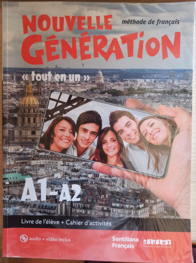 Detalles del productoLibro de francés "Nouvelle génération" de Santillana Français. Fue comprado NUEVO el curso 23-24 y está EN PERFECTO ESTADO, ya que se ha utilizado muy poco, además de forrado. Medidas del producto