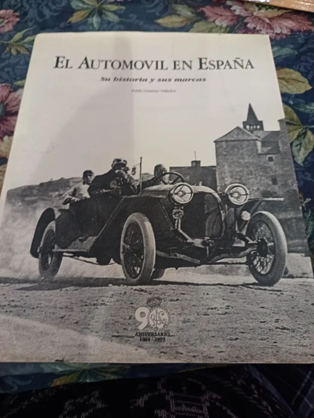 Libro sobre la historia del automóvil en España y sus marcas. - Cubierta con imagen de un coche antiguo. - Incluye el logo del 90 Aniversario (1903-1993).