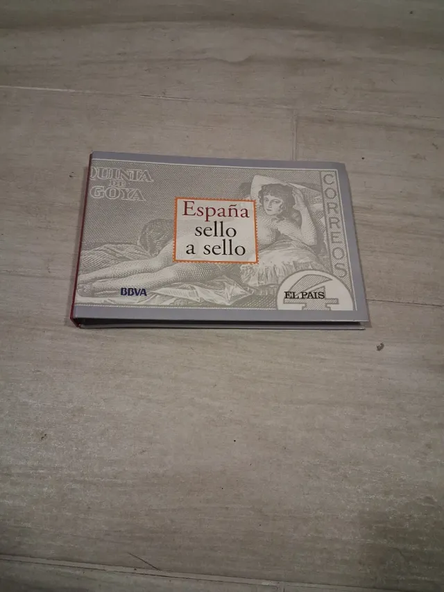 Libro sobre sellos de España, con ilustraciones de Goya. - Título: España sello a sello. - Ilustraciones de Goya. - Incluye logos de BBVA y El País.
