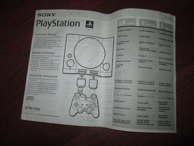 Libro Instrucciones Sony PlayStation SCPH-7502