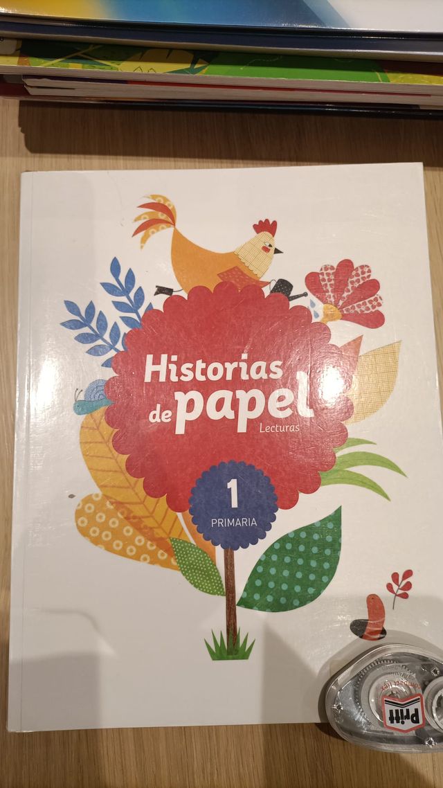 libro lectura SANTILLANA 2º primaria 9788468087443, HISTORIAS DE PAPEL. MUY MUY BUEN ESTADO, escrito a la lapiz muy flojo