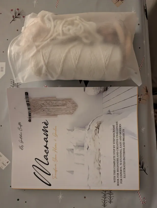 Detalles del productoConjunto de libro de macramé y cuerda.