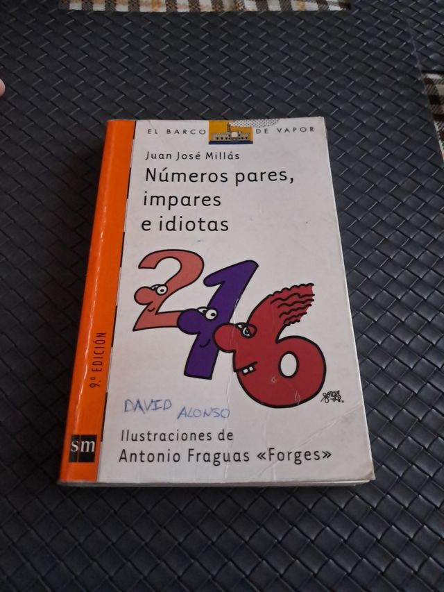 Libro Números pares, impares e idiotas de Juan José Millás. - Novena edición. - Ilustraciones de Antonio Fraguas Forges. - Colección El Barco de Vapor.