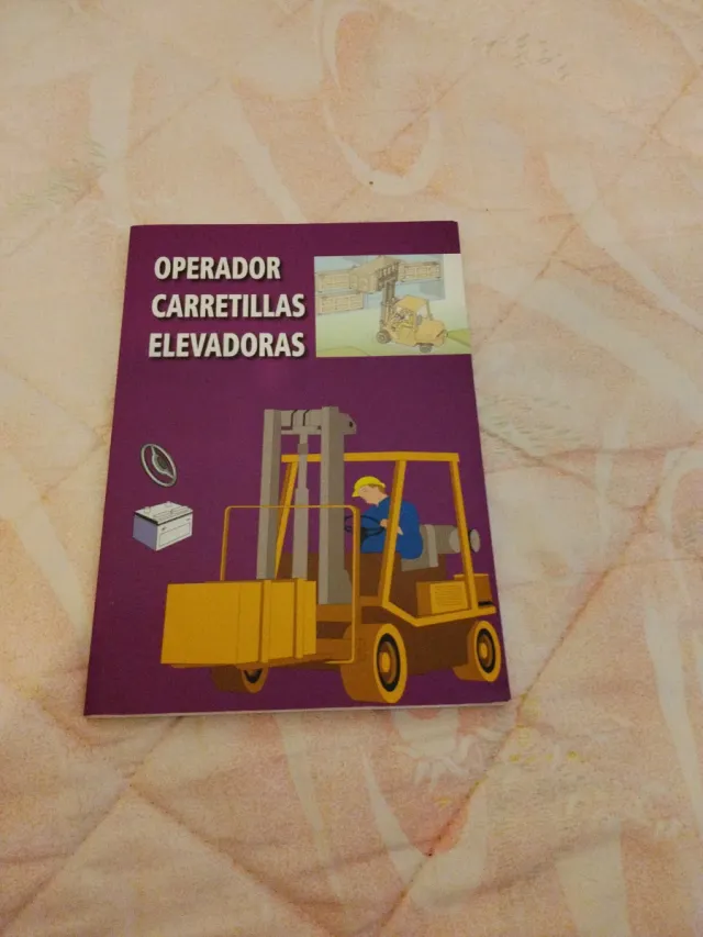 Manual para la formación de operadores de carretillas elevadoras. - Cubierta morada. - Ilustraciones de carretillas y componentes.