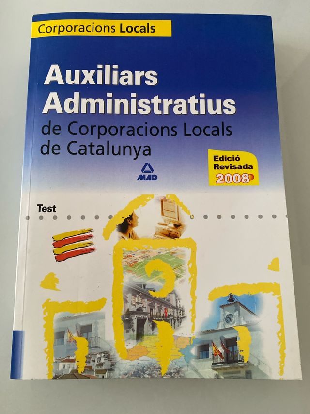 libro test preparación oposicione Auxiliar Administrativo Corporaciones Locales Catalunya. En perfecto estado.