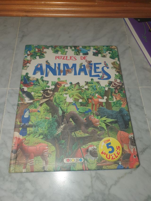 Libro infantil con puzzles de animales. - Incluye 5 puzzles. - Ilustraciones coloridas de animales.