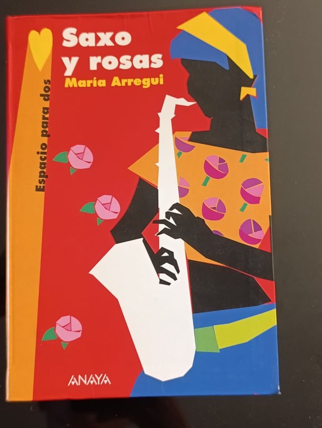 Libro Saxo y rosas de María Arregui. - Ilustraciones coloridas y llamativas. - Portada con diseño artístico.