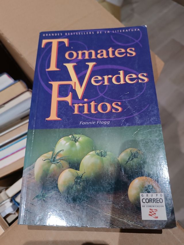Novela Tomates Verdes Fritos de Fannie Flagg. - Edición en español. - Portada con imagen de tomates verdes.
