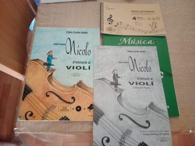 libro violín con cd, libro de partitura, libreta de partitura, cera y almohadilla para apoyar el hombro el violín