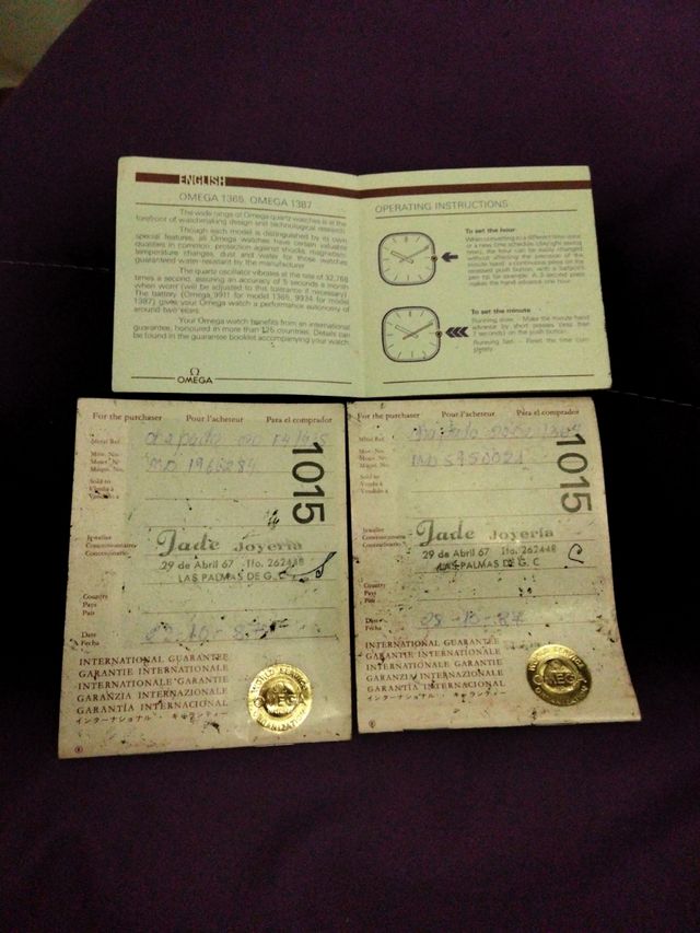 Documento de reloj omega vintage