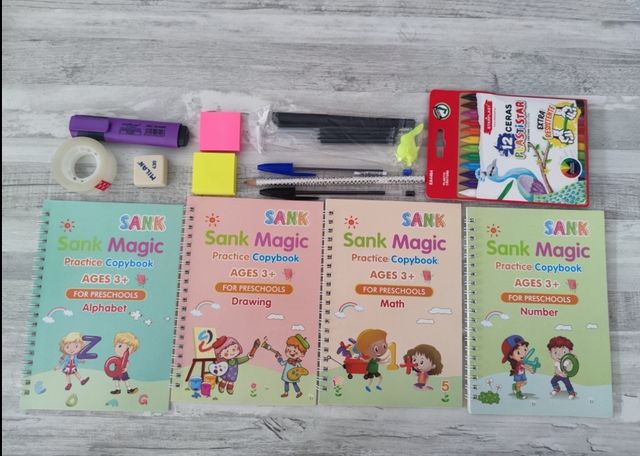 Alfabeto, números, matemáticas y dibujo. Tinta borrable para reutilizar una y otra vez. Incluye el bolígrafo y varias recargas