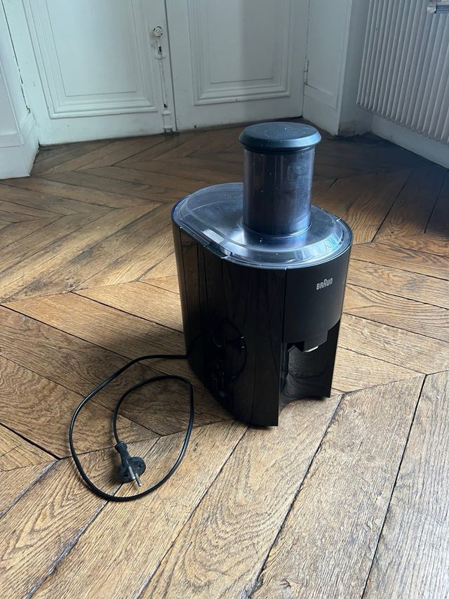 Potente licuadora centrífuga de la marca Braun, diseñada para extraer jugo rápidamente.