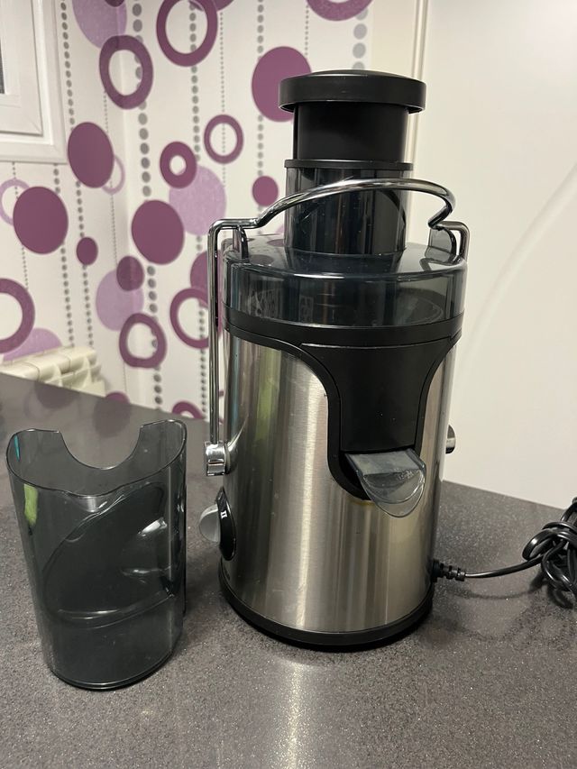 Licuadora de acero inoxidable con un diseño moderno. - Cuerpo de acero inoxidable. - Boca ancha para introducir frutas y verduras enteras. - Palanca de seguridad.