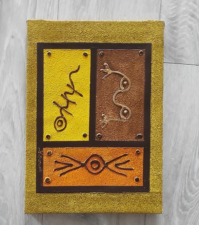 Detalles del productoLienzo Taíno, arte antiguo decorativo de la República Dominicana que mide 36x25cm., muy decorativo y muy colorido como todo el arte taíno, está en muy buen estado, lo vendo muy económico por sólo 15€.