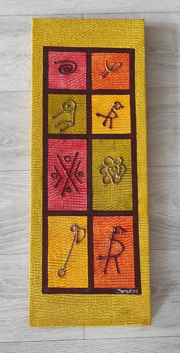 Lienzo Taíno firmado, arte antiguo de la República Dominicana que mide 71x27cm, muy colorido y muy decorativo...lo vendo muy económico, por tan sólo 20€.